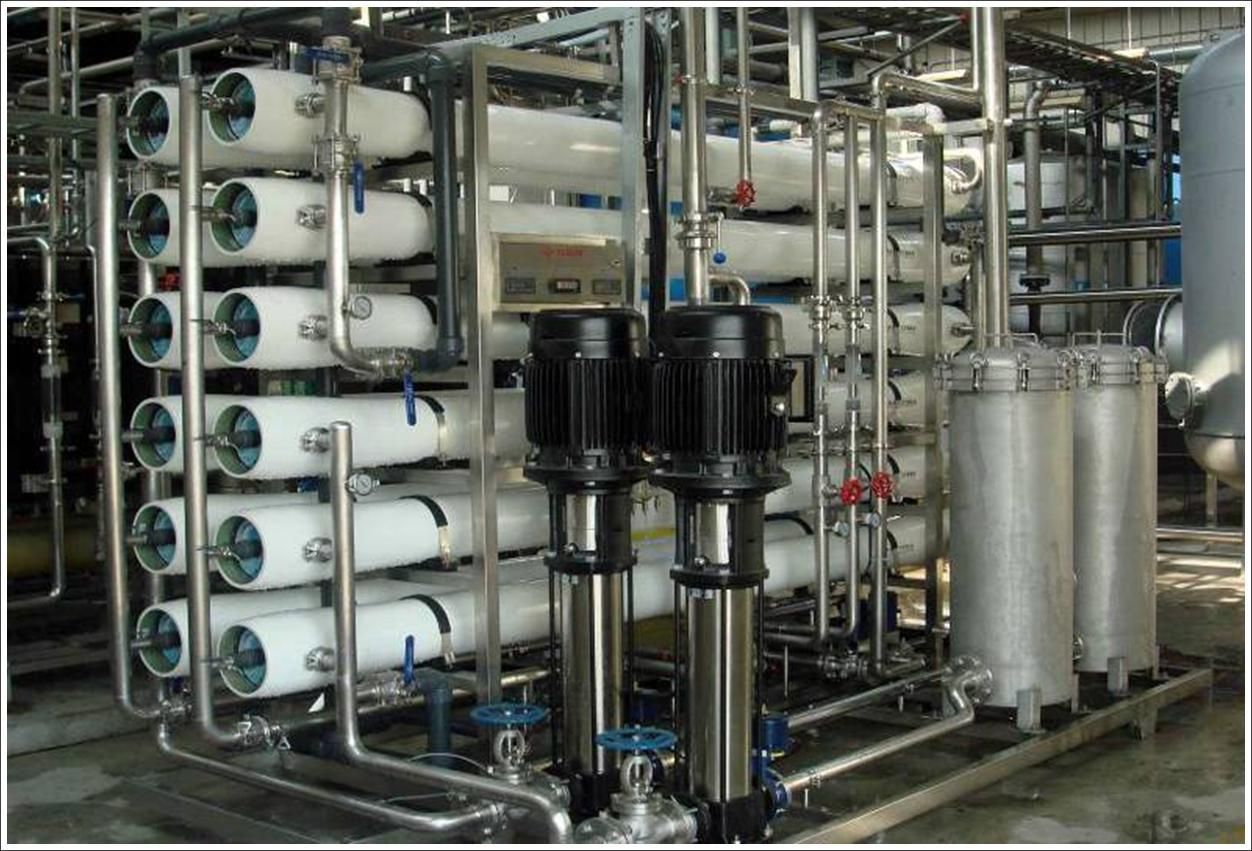 采用預處理、反滲透技術、超純化處理以及后級處理等方法,將水中的導電介質幾乎完全去除,又將水中不離解的膠體物質、氣體及有機物均去除至很低程度的水處理設備。